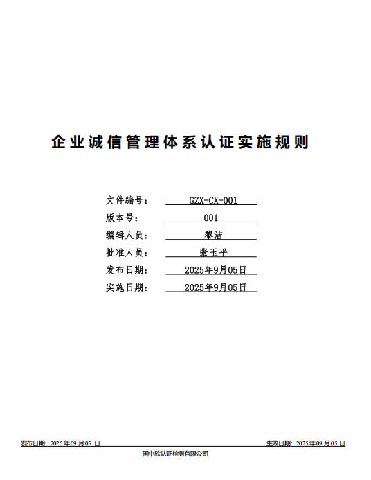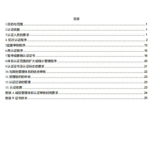 已公示企业诚信管理体系认证实施规则封面及目录,若需获取全文可通过以下途径获取: